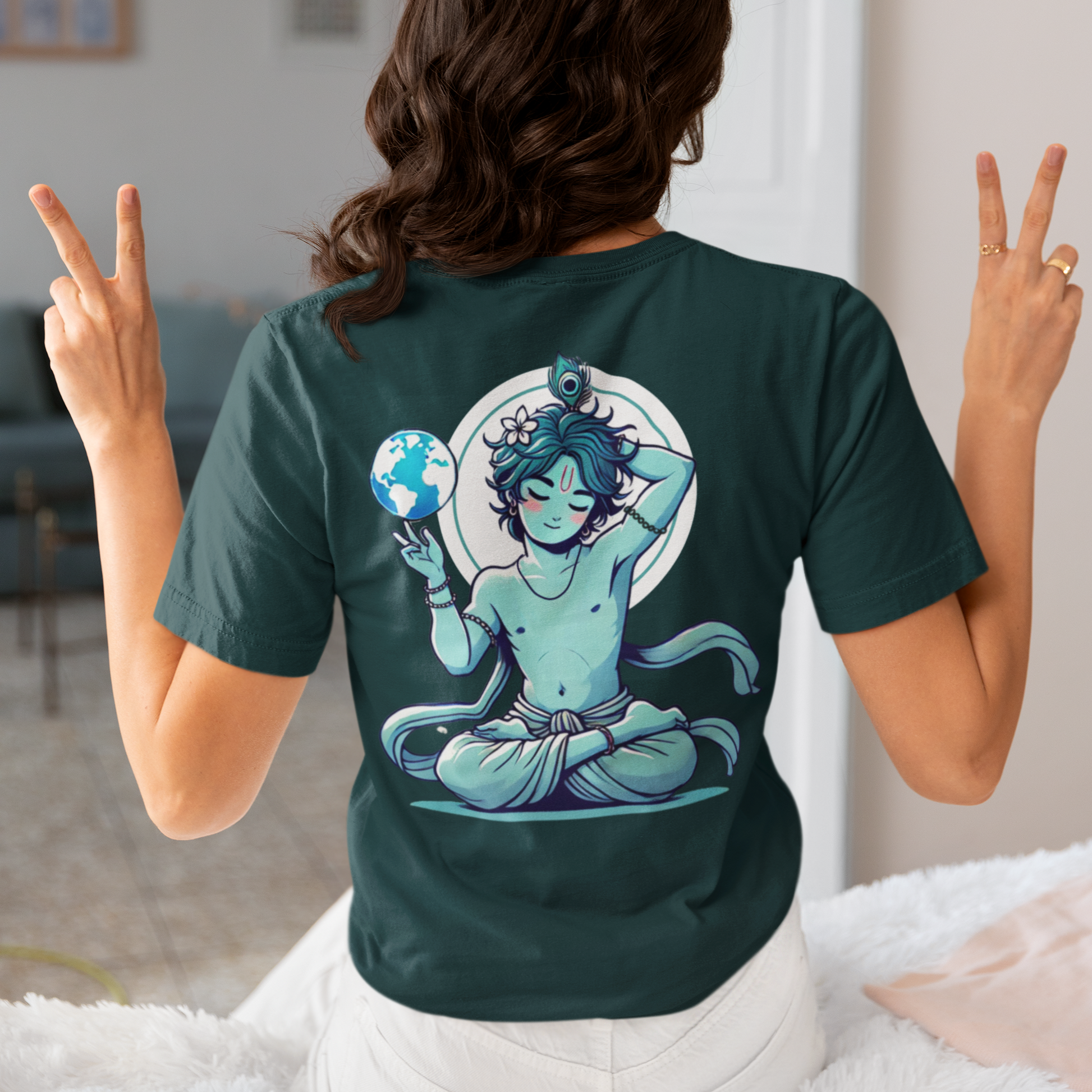 When the people of Vrindavan were threatened by torrential rains from angry Indra, Krishna lifted Govardhan on just one finger, offering shelter to all — humans, cows, and creatures alike. He stood like that for seven days, smiling the whole time, unmoved by weight or fear.
