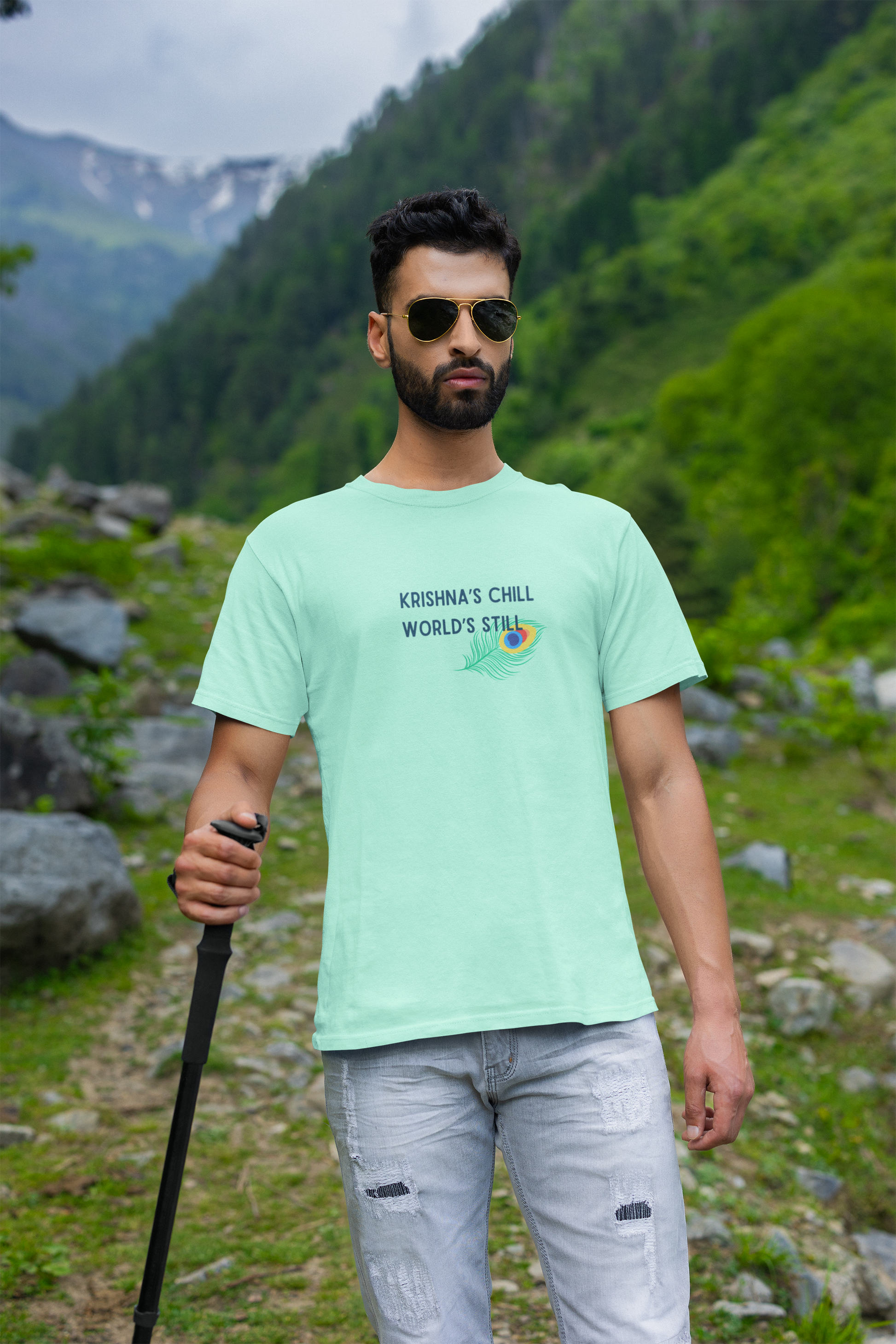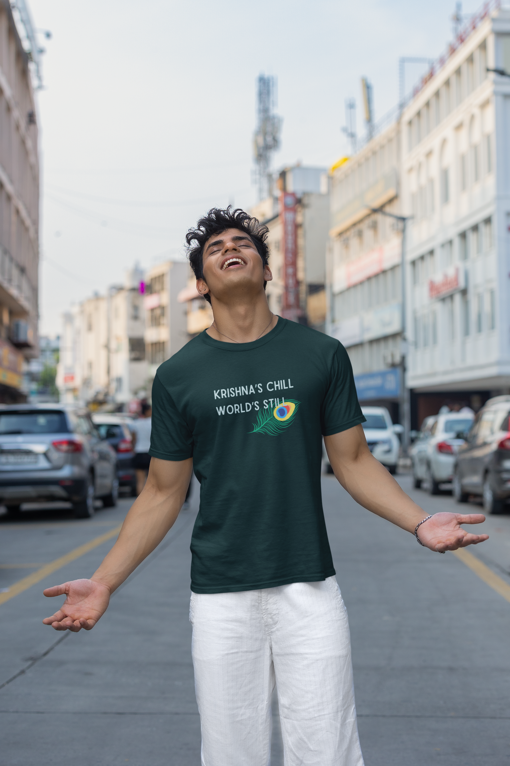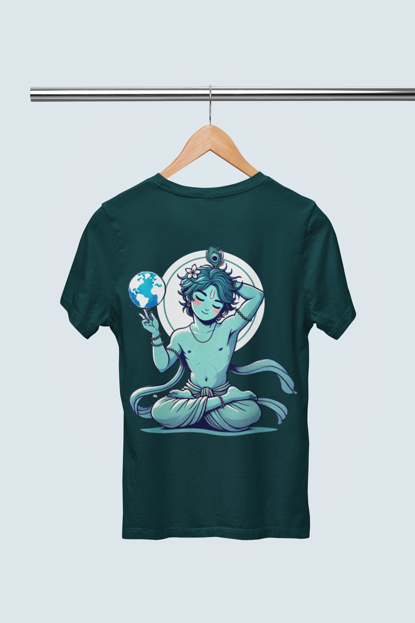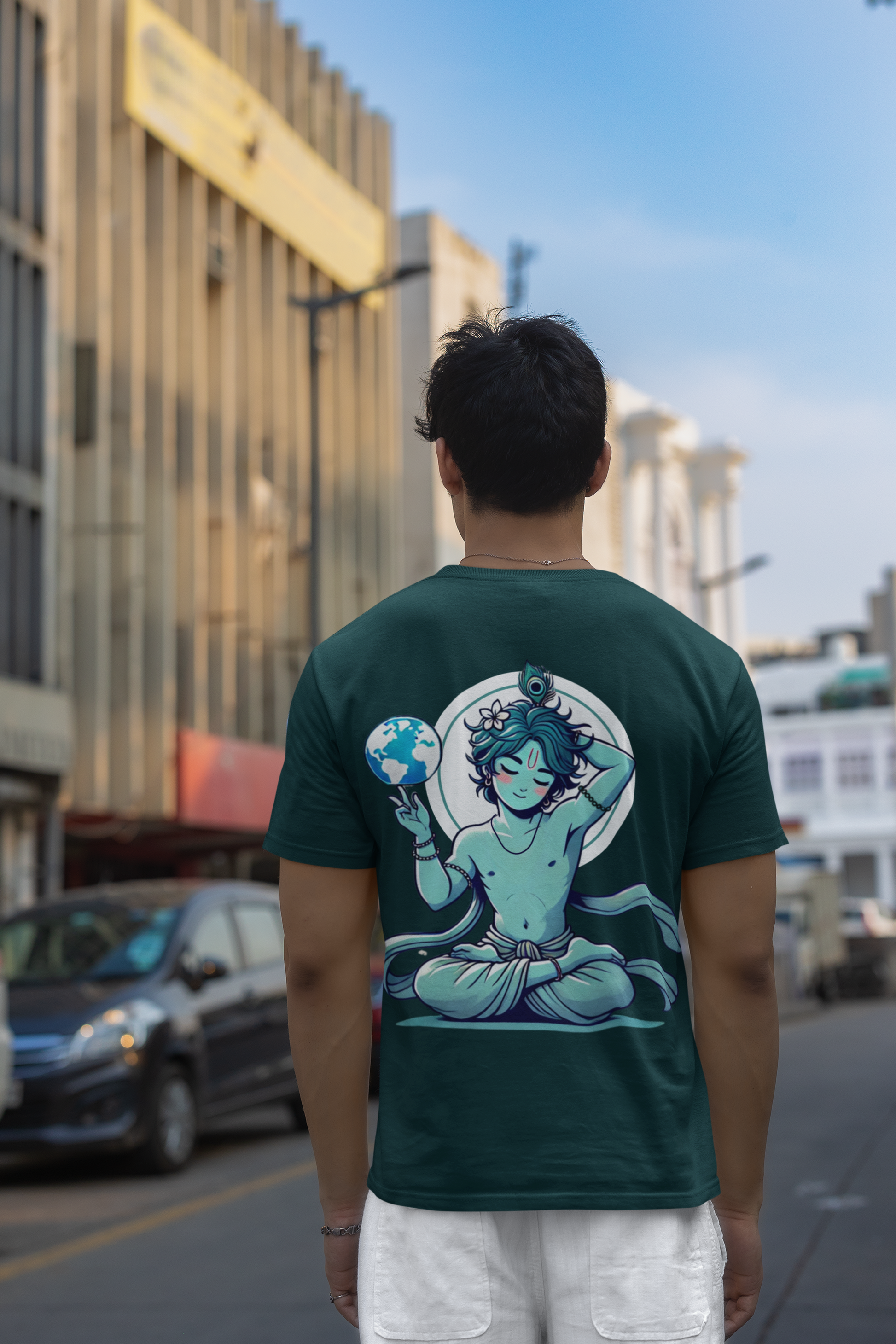 When the people of Vrindavan were threatened by torrential rains from angry Indra, Krishna lifted Govardhan on just one finger, offering shelter to all — humans, cows, and creatures alike. He stood like that for seven days, smiling the whole time, unmoved by weight or fear.