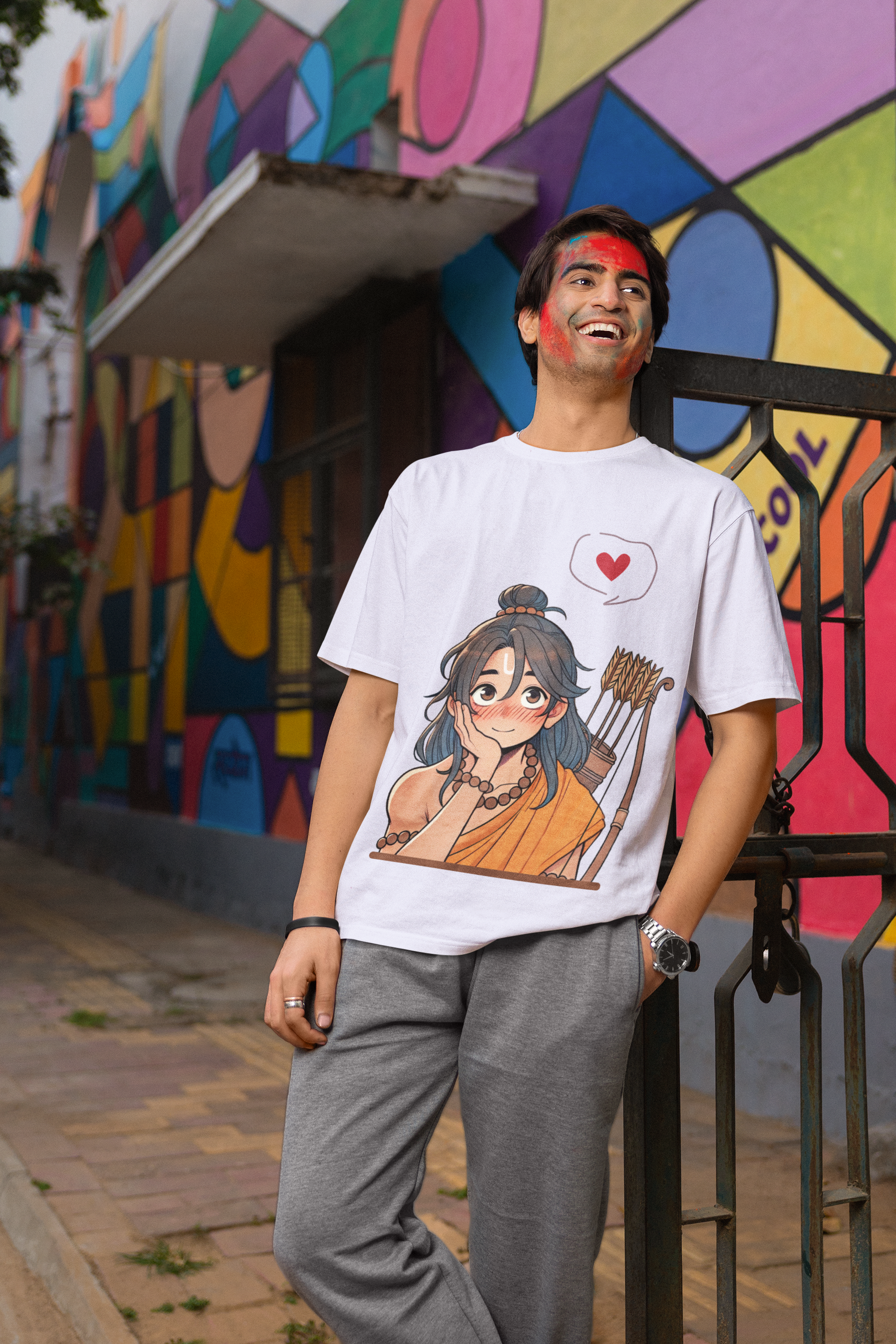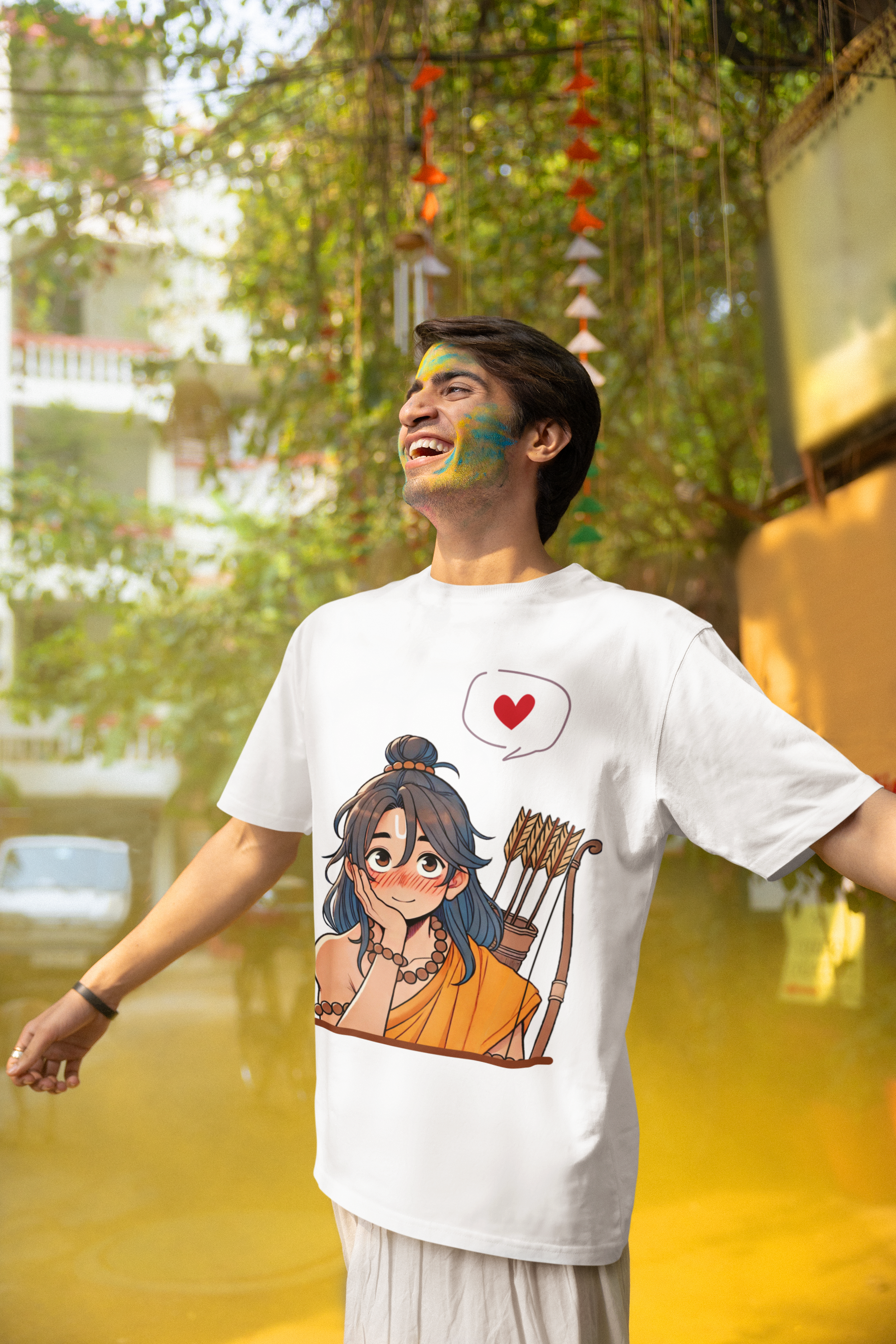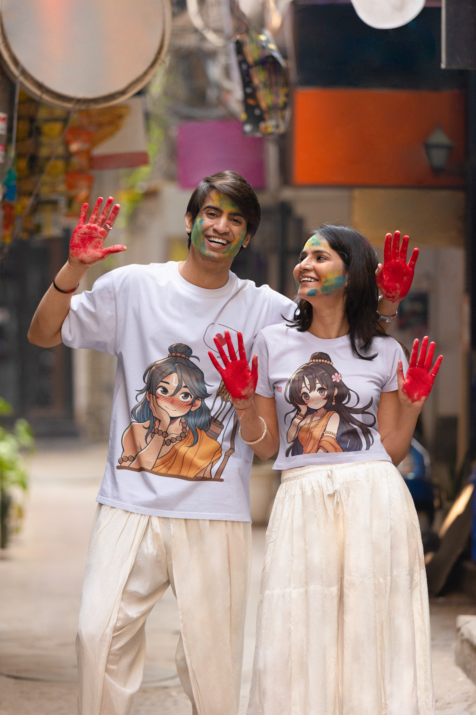 Inspired by the innocence of first love and the timeless glow of admiration, this couple’s t-shirt set is a fresh, youthful take on the divine romance. It captures that sweet moment before the love story begins—the heartbeat, the hesitation, the head tilt.