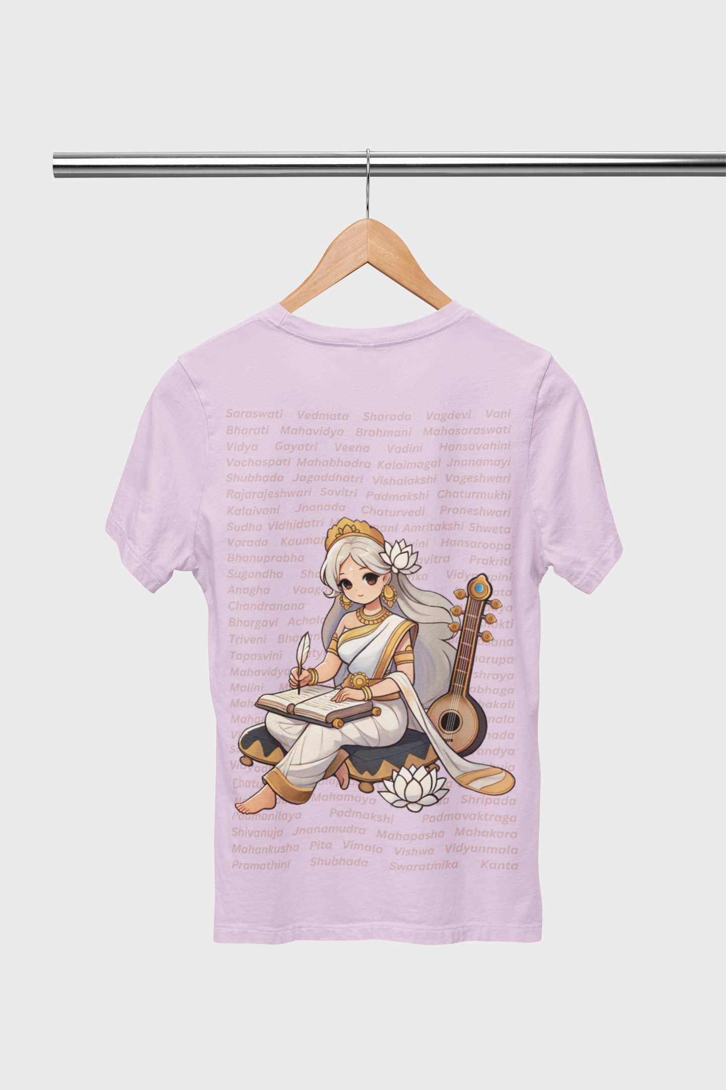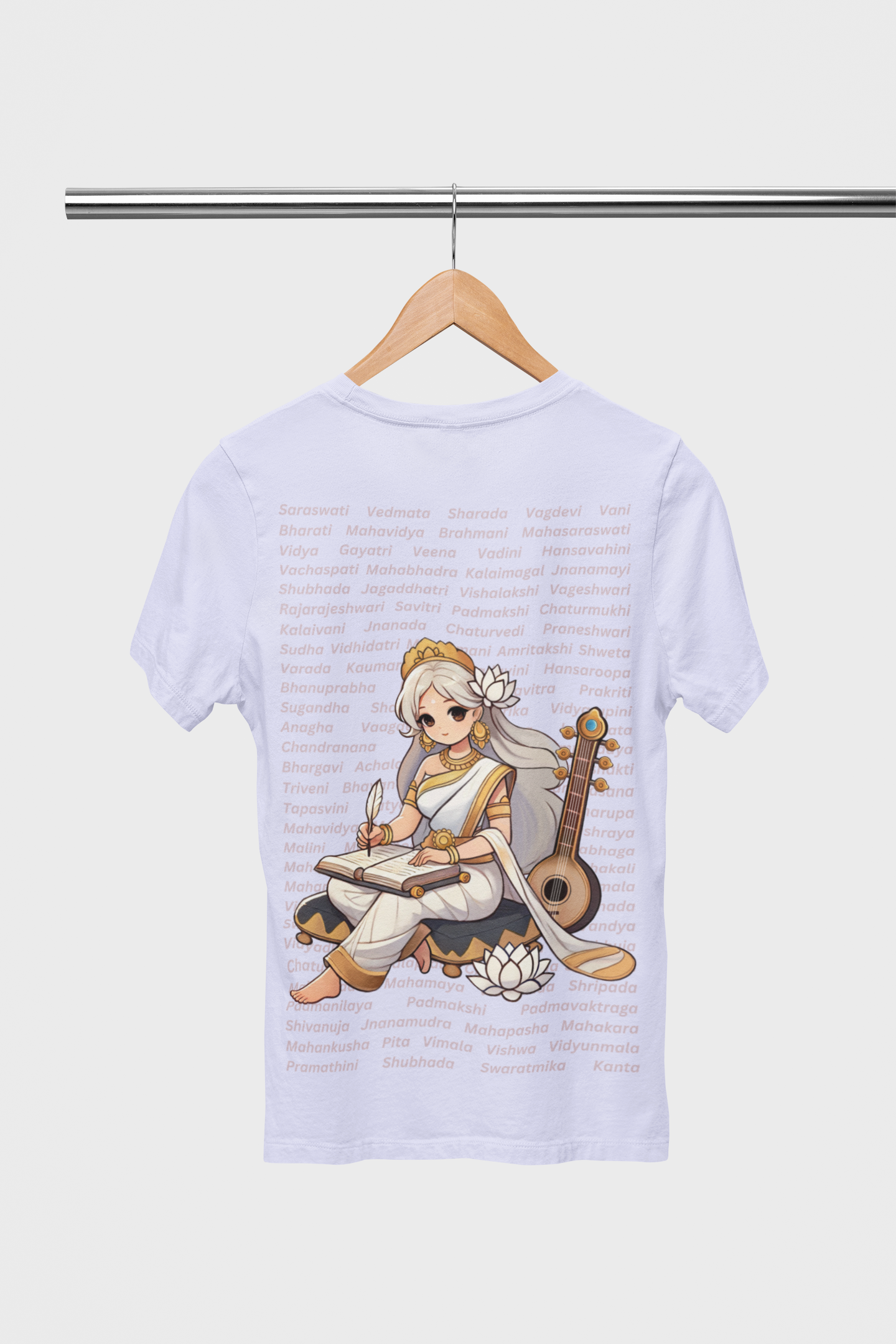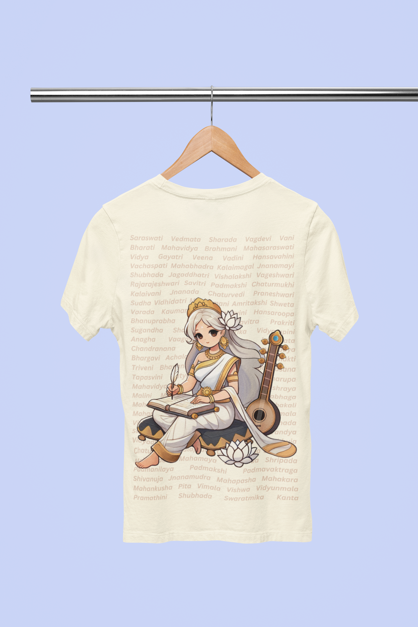 Draped in elegance and purity, this serene depiction of Goddess Saraswati captures the eternal grace of knowledge, music, and art. The design isn't just a visual - it’s a soft whisper of wisdom in a chaotic world.