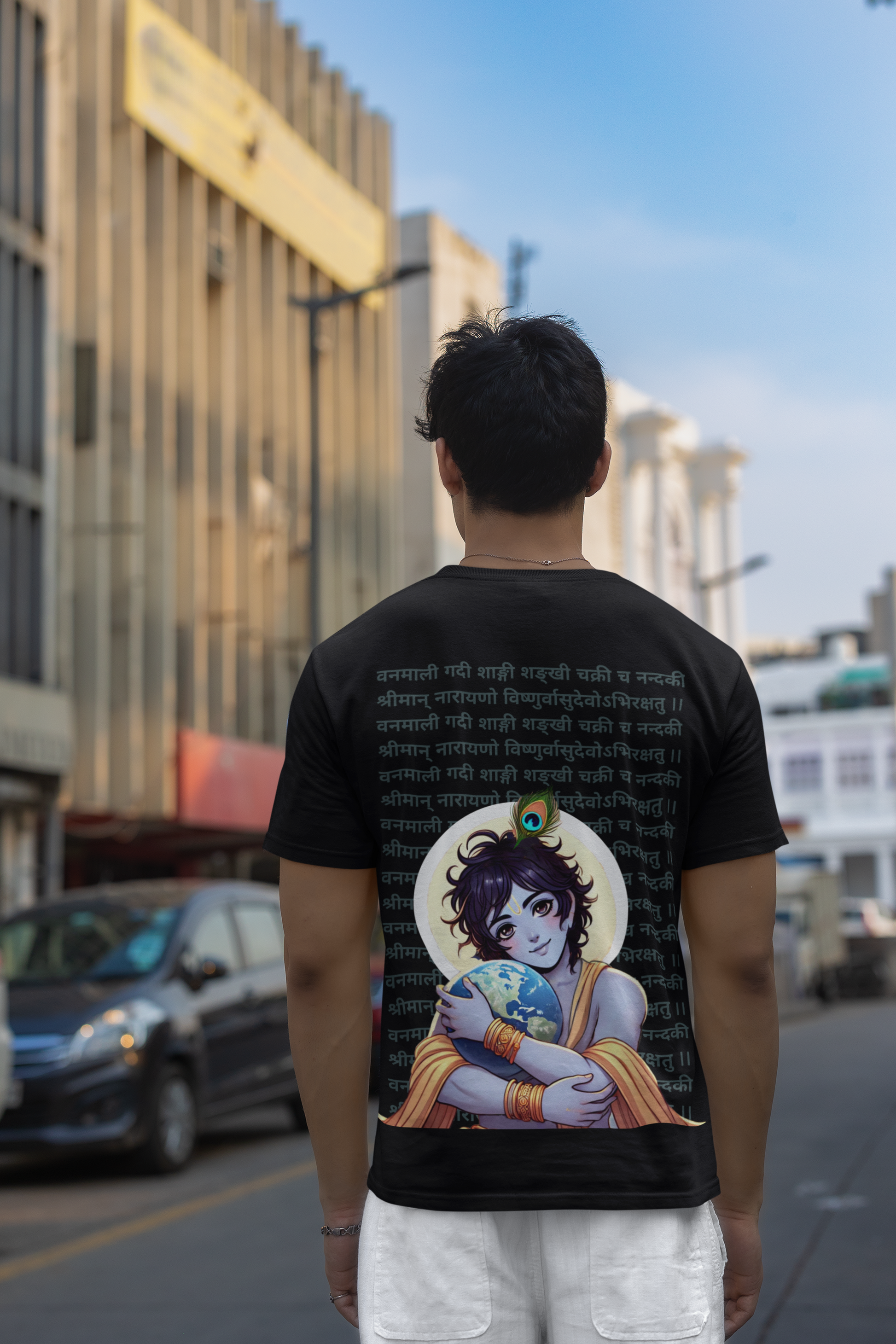 This image reflects that exact truth - Krishna as the creator, the sustainer, and the gentle guardian of everything we know.