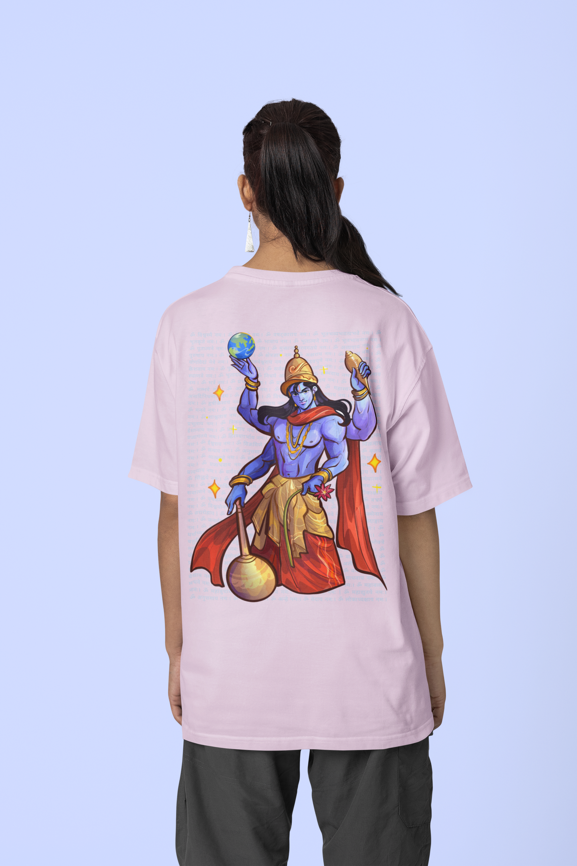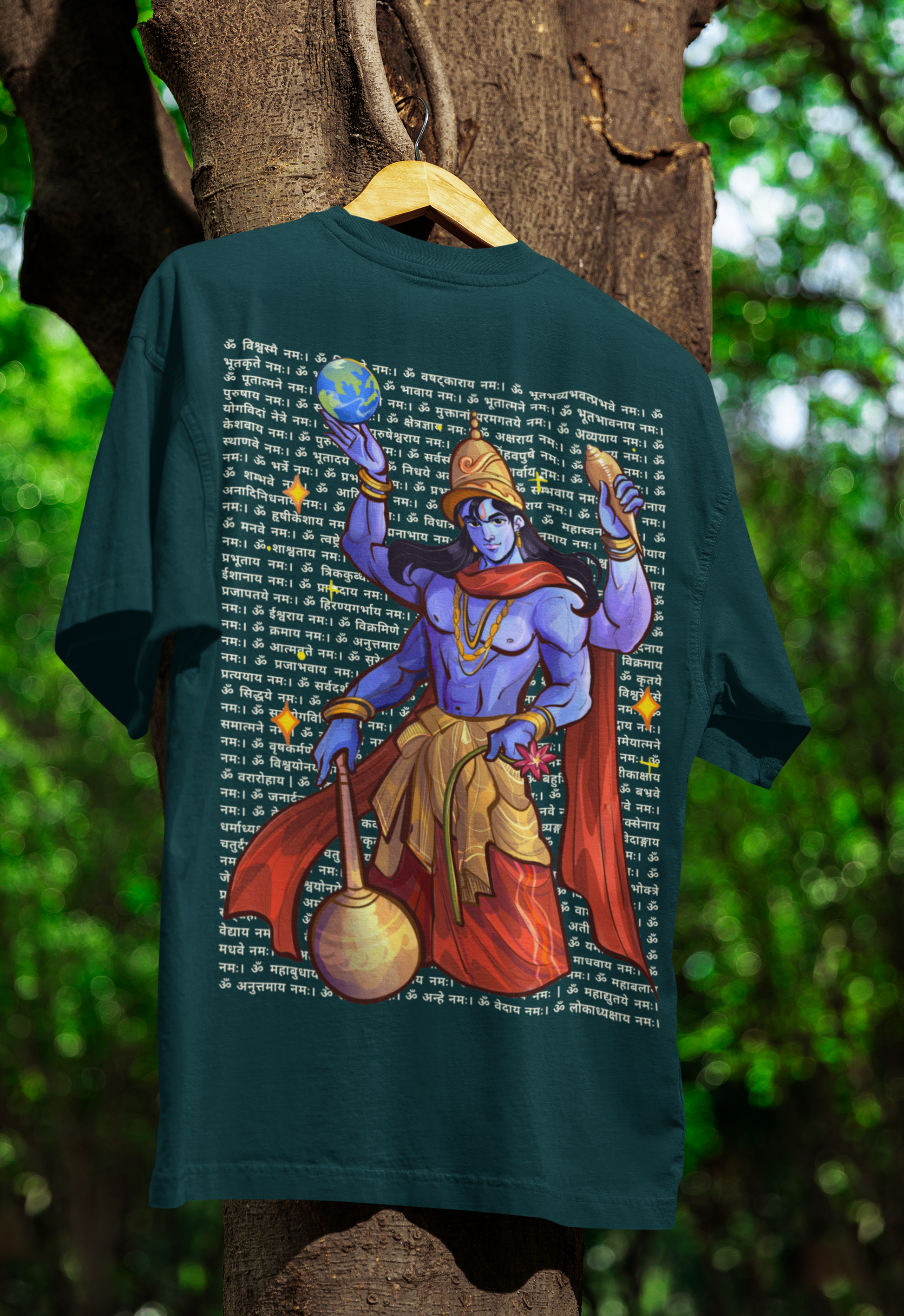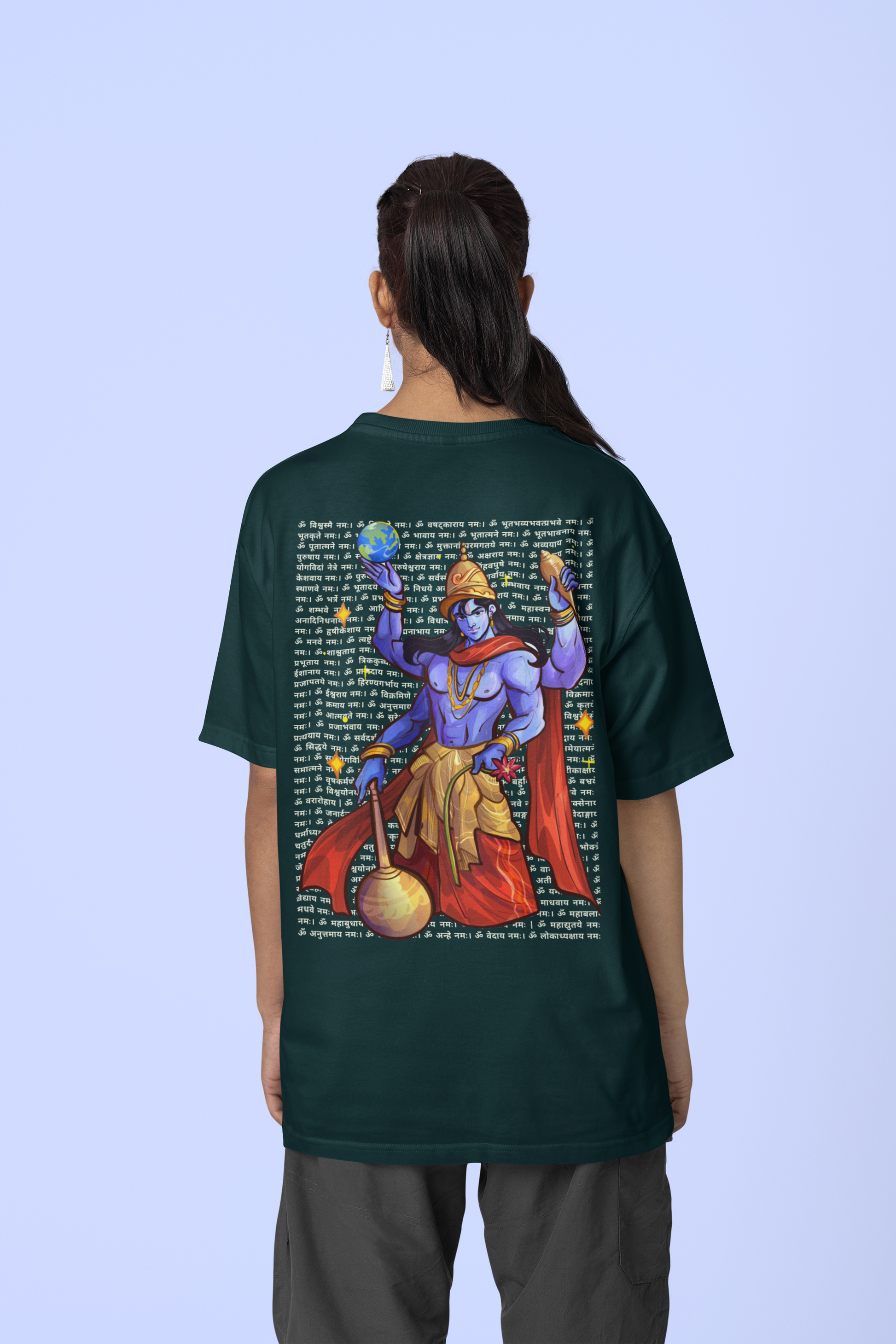 He holds the Sudarshan Chakra and the Earth like a reminder - "I’ve got this." His four arms aren’t just a style - they represent Purity, Protection, Power, and Purpose.