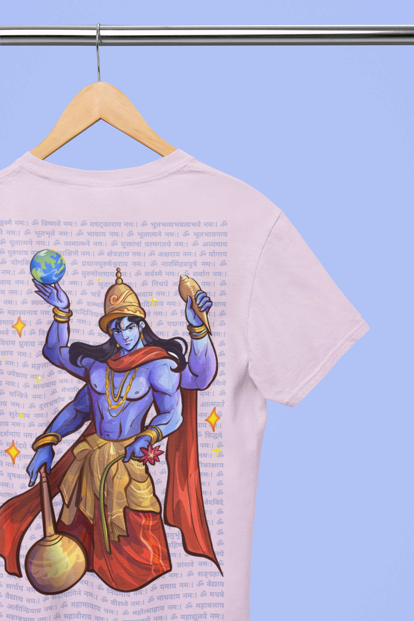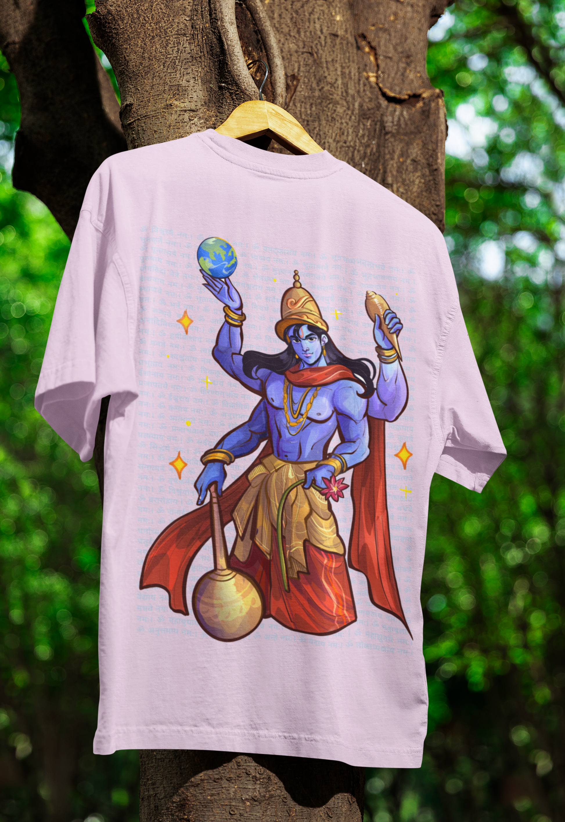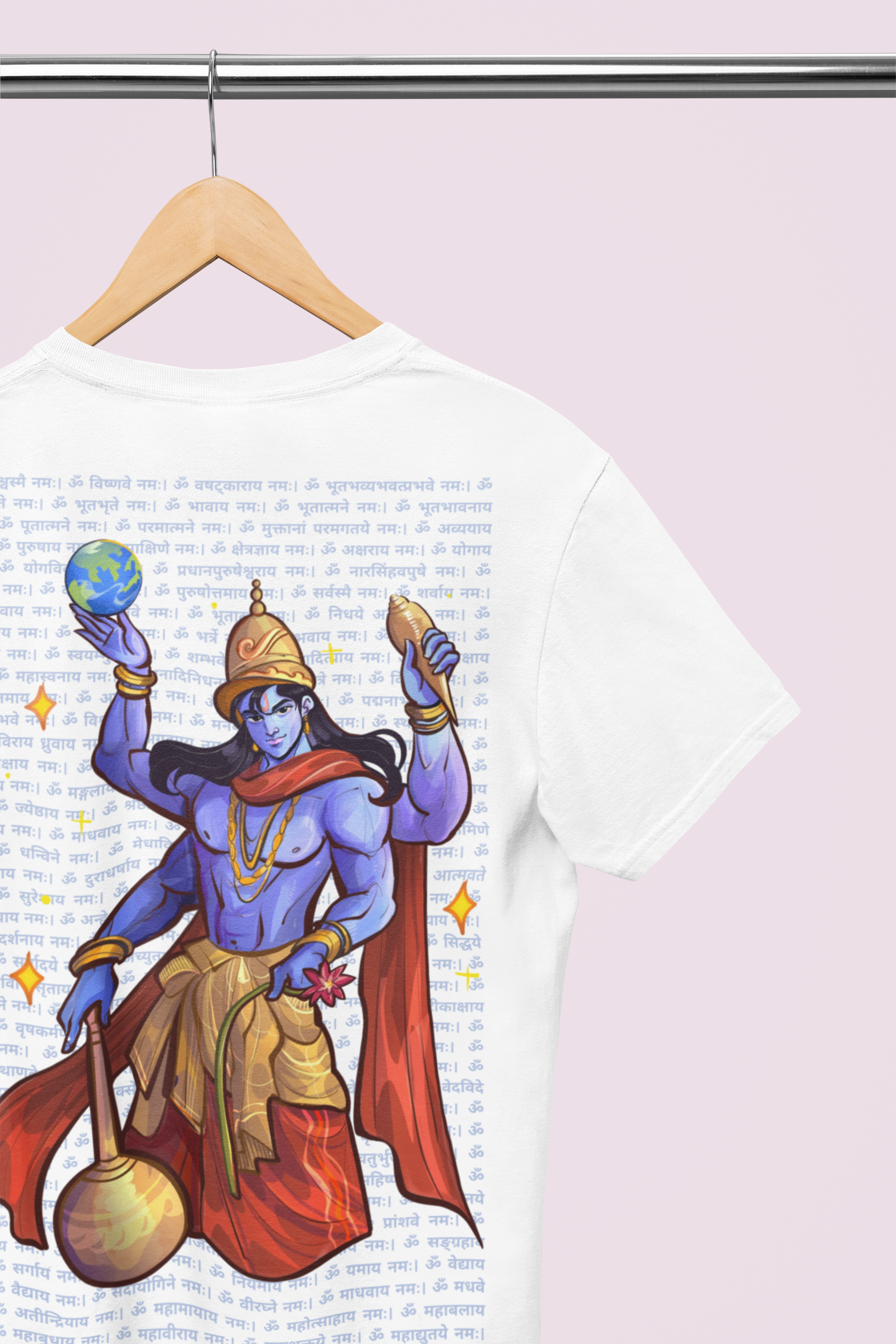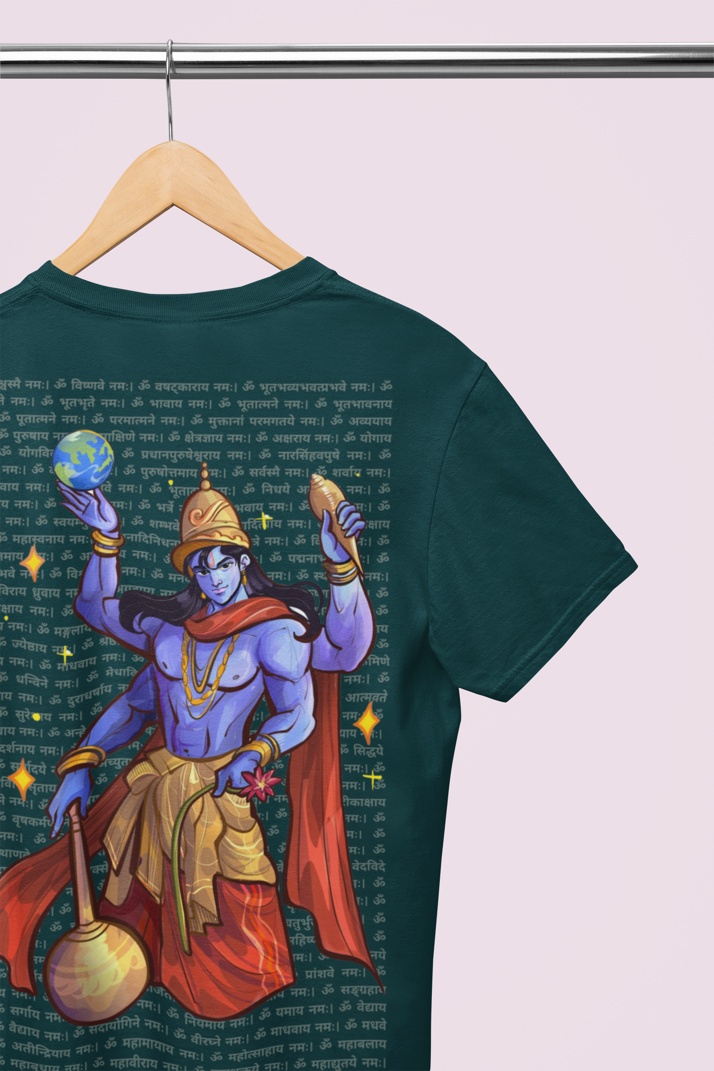He holds the Sudarshan Chakra and the Earth like a reminder - "I’ve got this." His four arms aren’t just a style - they represent Purity, Protection, Power, and Purpose.