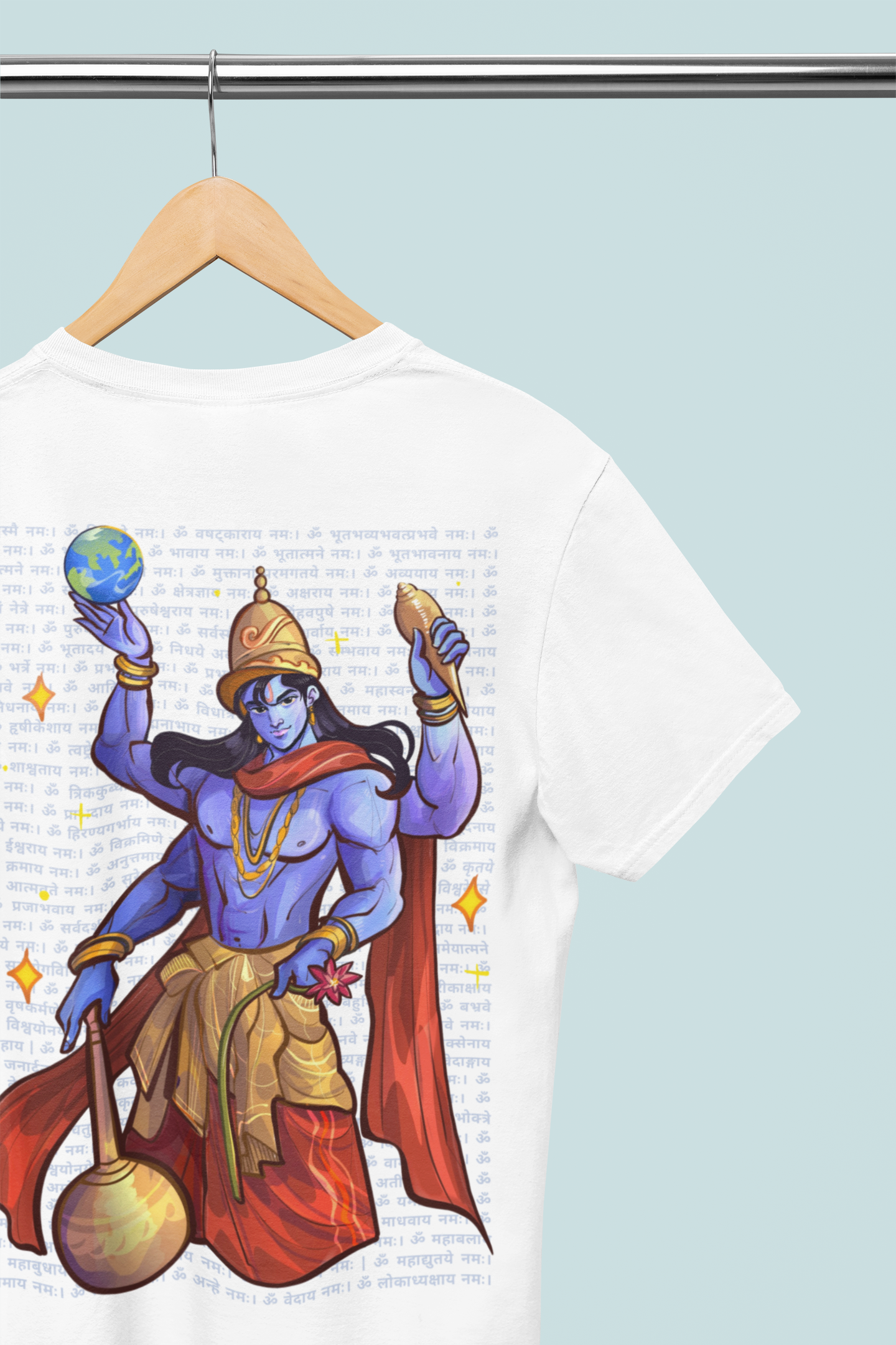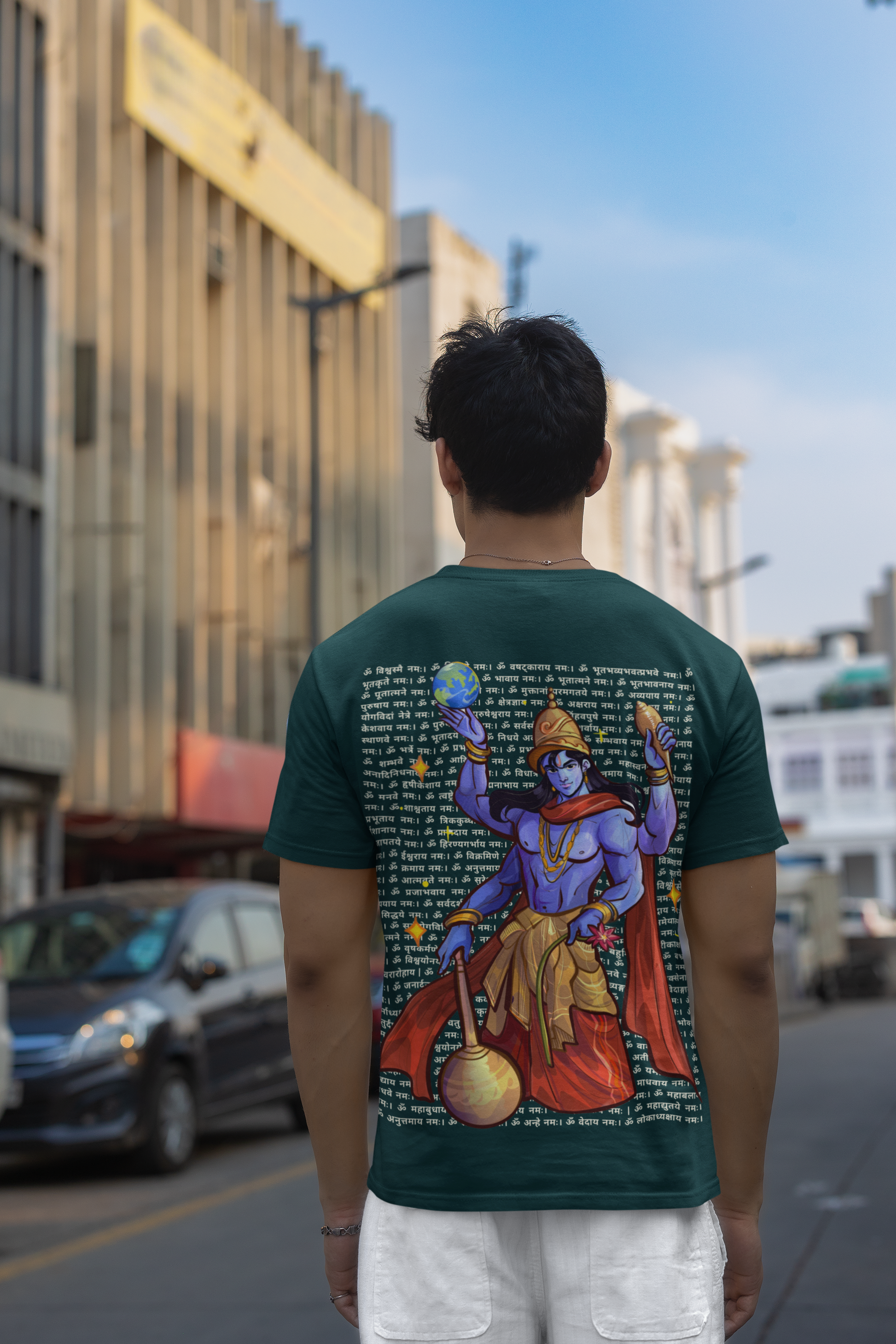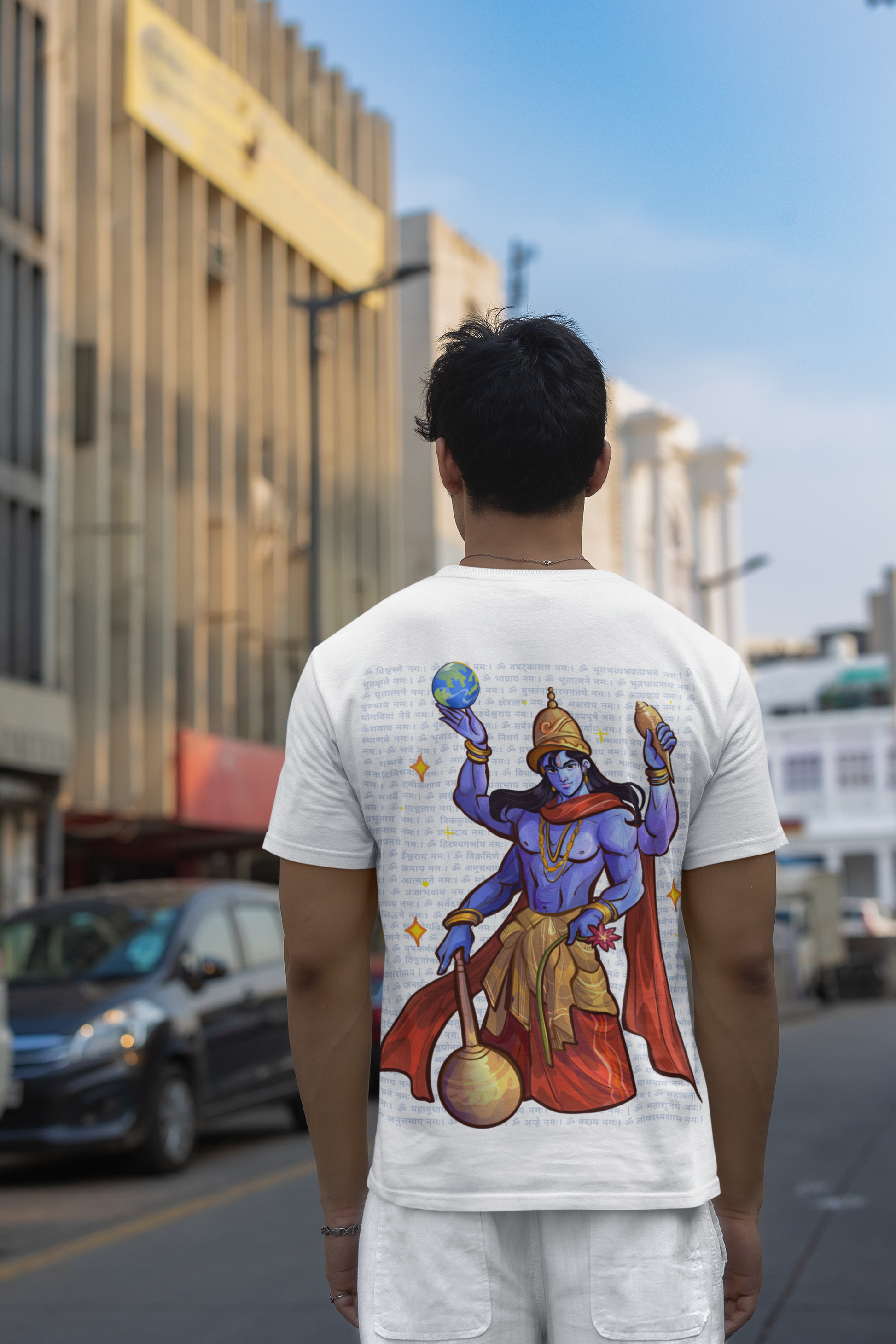 He holds the Sudarshan Chakra and the Earth like a reminder - "I’ve got this." His four arms aren’t just a style - they represent Purity, Protection, Power, and Purpose.